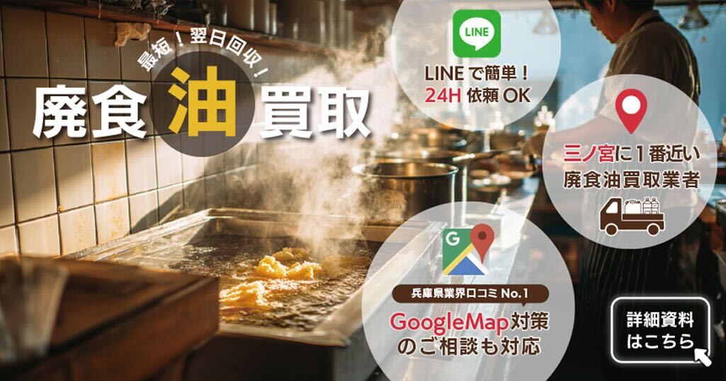 三ノ宮・元町の多くの飲食店・企業様に、廃食油のリサイクル活動にご協力いただいています。